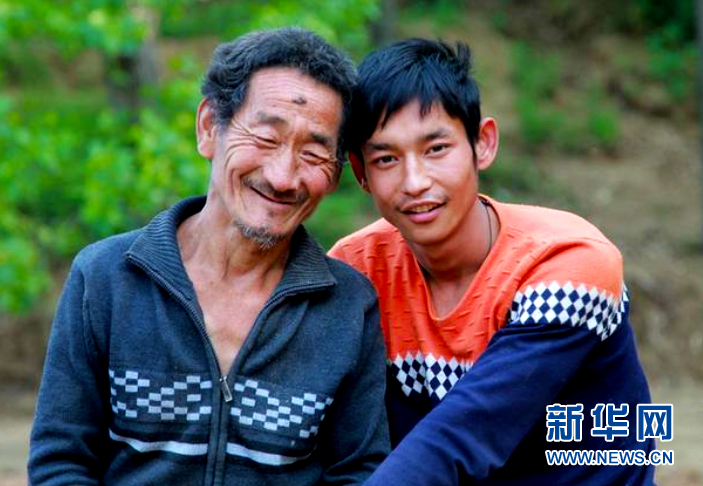 这是丁转成(右)与父亲的合影(资料照片)。新华社发