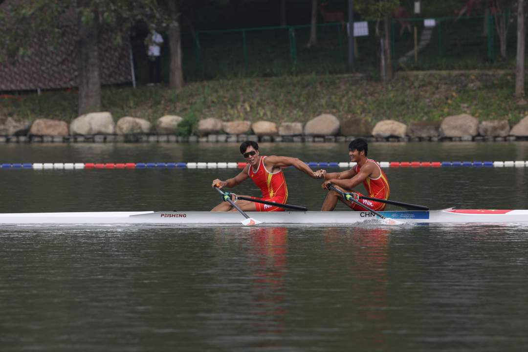 中国队夺得赛艇男子双人双桨金牌