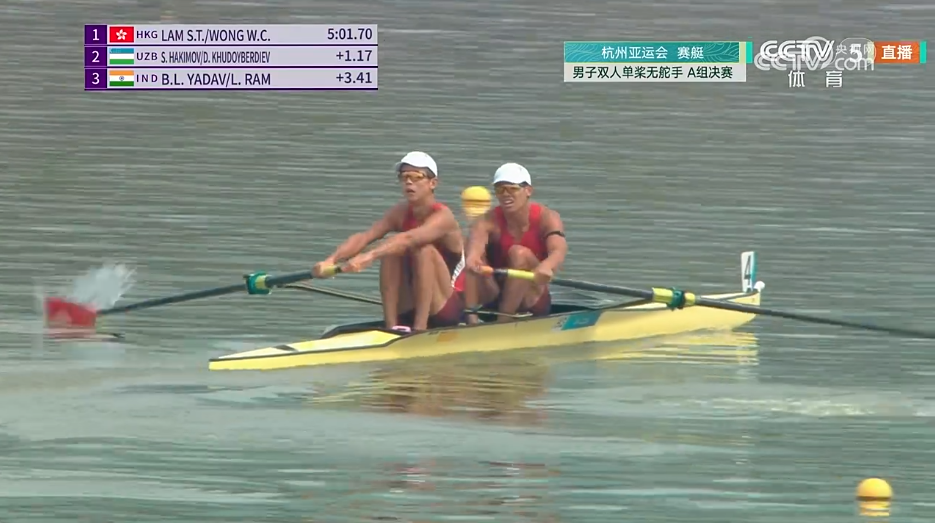 中国香港代表团首金!赛艇组合夺得男子双人单桨无舵手金牌
