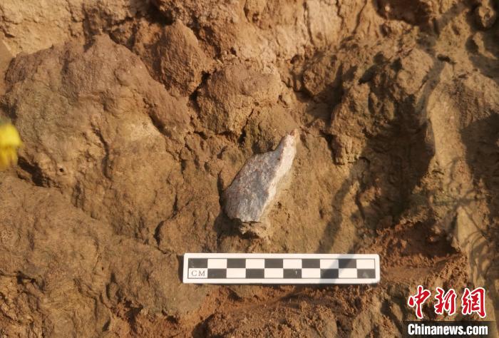 图为地层中埋藏的石制品。陕西省第四次全国文物普查旧石器专项调查工作队供图