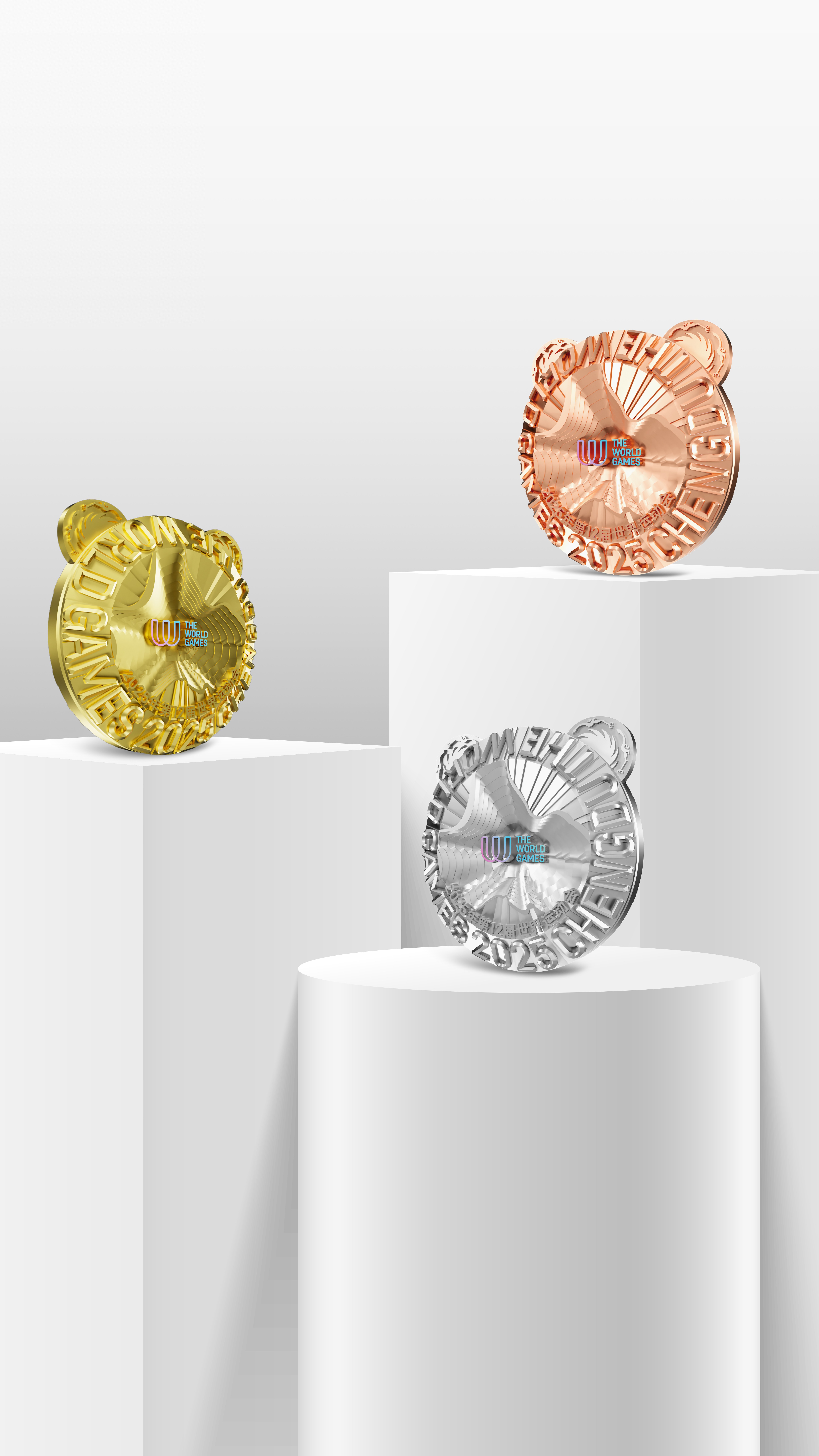 图为成都世运会金、银、铜牌效果图。新华社发(成都世运会执委会供图)