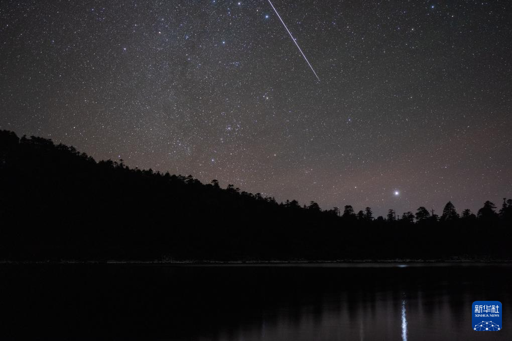 12月13日,在四川省甘洛县牛角海,一颗双子座流星在夜空中划过。