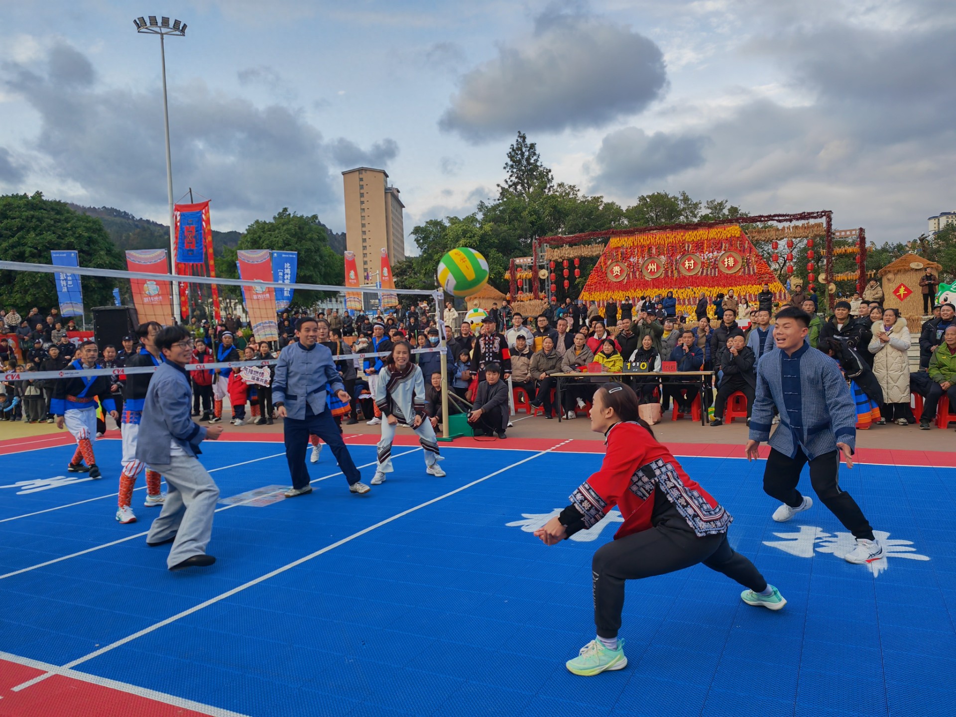 元旦揭幕的“村排”联赛,荔波全县以村级为单位组队报名,8个乡镇(街道)的106支队伍参赛;每队领队、教练员各1人,8名运动员从村民和驻村帮扶单位中选拔;上场队员3男2女,其中村民不少于3人。元旦3天假期,“村排”联赛将上演40多场比赛,总决赛预计在今年5月至6月打响。