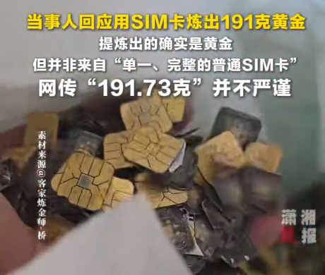 他表示,提炼出的确实是黄金,但并非来自“单一、完整的普通SIM卡”,而是来源于通信电子领域中的芯片类镀金废料集合。网络上流传“191.73 克”这一数字,是某一批次成品的称重数据,但在传播过程中被简化成了“用 SIM卡炼金”,这一说法并不严谨,也容易引发误解。
