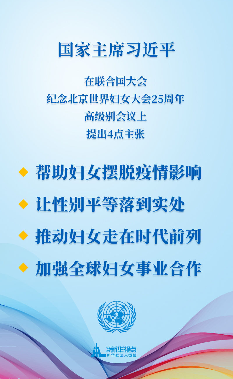 这四点主张,为新形势下全球妇女事业指引了发展方向,再次体现了中国在世界妇女事业方面的领导作用。