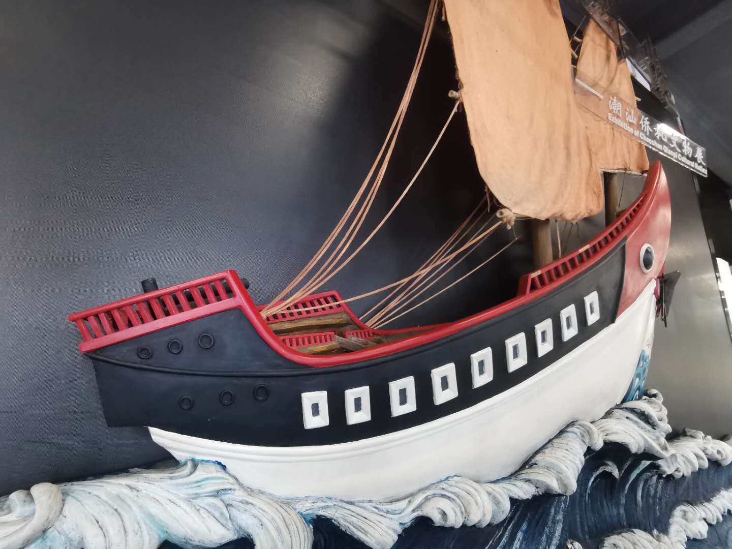 △当年潮汕人到海外谋生,出洋所乘的是这种高桅杆的红头船。如今红头船已成为潮汕人“团结 拼搏 拓展 创新”的精神象征。(总台央视记者杨波拍摄)