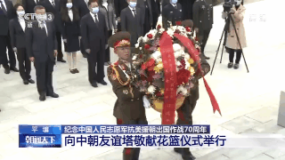 当地时间21日,以中共中央总书记、国家主席、中央军委主席习近平名义向朝鲜平壤中朝友谊塔、桧仓中国人民志愿军烈士陵园敬献花篮仪式在朝鲜举行。中国驻朝鲜大使率全体馆员及其他在朝中方人员代表出席。