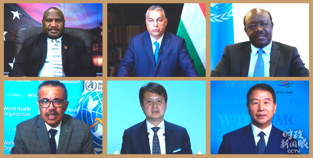 △巴布亚新几内亚总理马拉佩、匈牙利总理欧尔班、联合国贸易和发展会议秘书长基图伊、世卫组织总干事谭德塞、世界知识产权总干事邓鸿鑫、世贸组织副总干事易小准发表视频致辞。