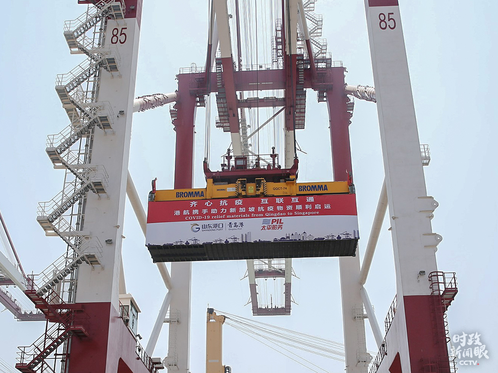 △今年4月份,“顺城”轮从青岛前湾港出发,沿“一带一路”航线将防疫物资送往新加坡。