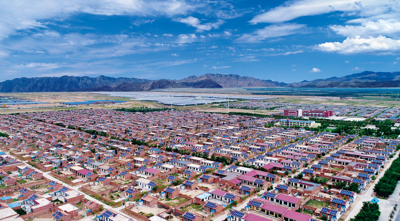 1996年,东西部扶贫协作开启壮丽征程,福建与宁夏结成帮扶对子。经过20多年脱贫攻坚,作为两省区扶贫协作的示范窗口,闽宁村发展成了闽宁镇,昔日“干沙滩”变成了如今的“金沙滩”,从西海固地区搬迁来的6.6万生态移民过上了好日子。图为宁夏永宁县闽宁镇的移民新村原隆村。申进湘/摄