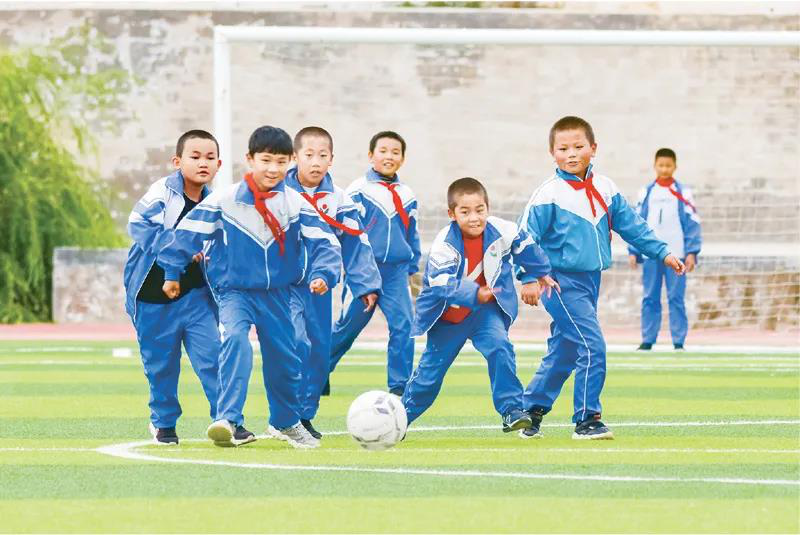 教育是阻断贫困代际传递的治本之策。海原县地处宁夏中南部,曾是六盘山集中连片特困区国定贫困县。党的十八大以来,在当地政府和扶贫帮扶单位的帮助与支持下,海原县坚持做好教育精准扶贫,改善教育条件,助力脱贫攻坚。图为2020年9月11日,海原县曹洼乡九年一贯制学校的学生在操场上踢足球。人民图片 刘帅冶/摄