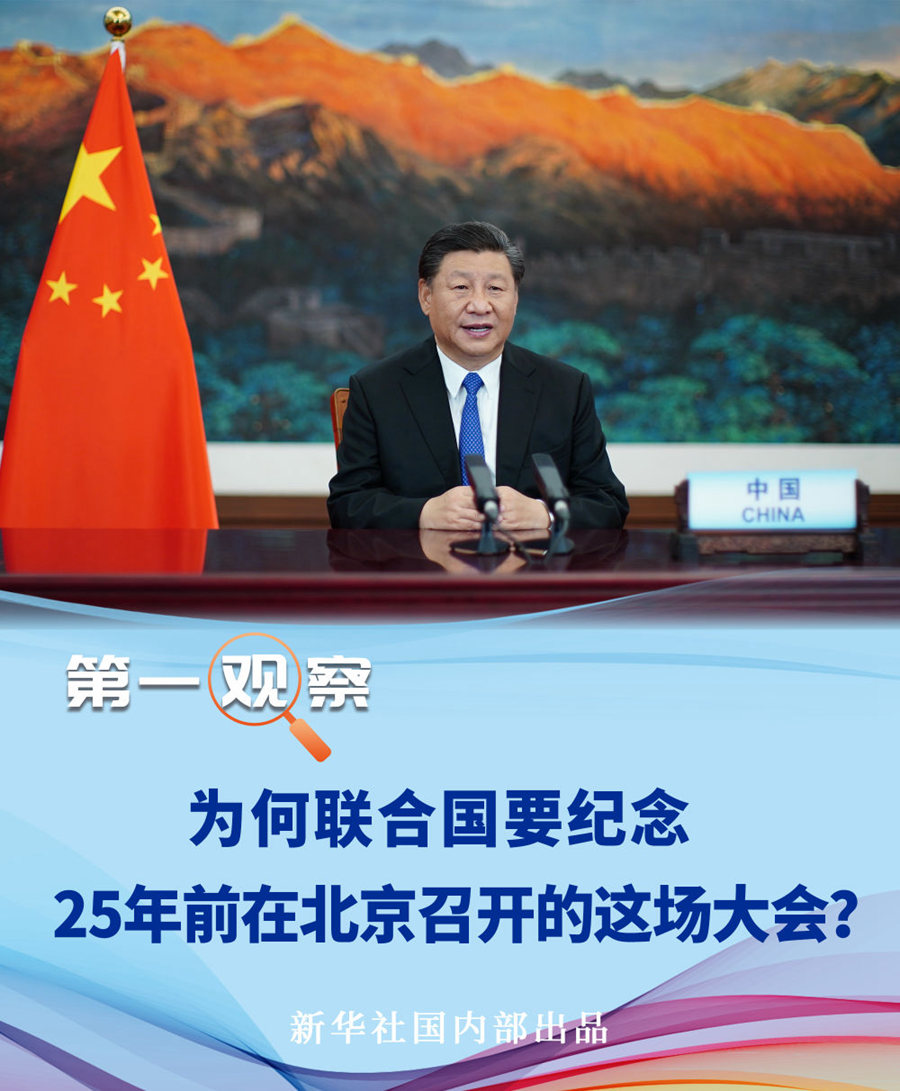 国家主席习近平1日在联合国大会纪念北京世界妇女大会25周年高级别会议上通过视频发表重要讲话。
