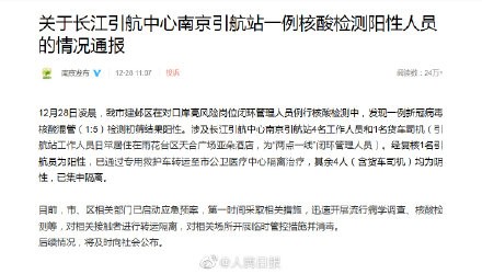 据南京发布:12月28日凌晨,我市建邺区在对口岸高风险岗位闭环管理人员例行核酸检测中,发现一例新冠病毒核酸混管(1:5)检测初筛结果阳性。