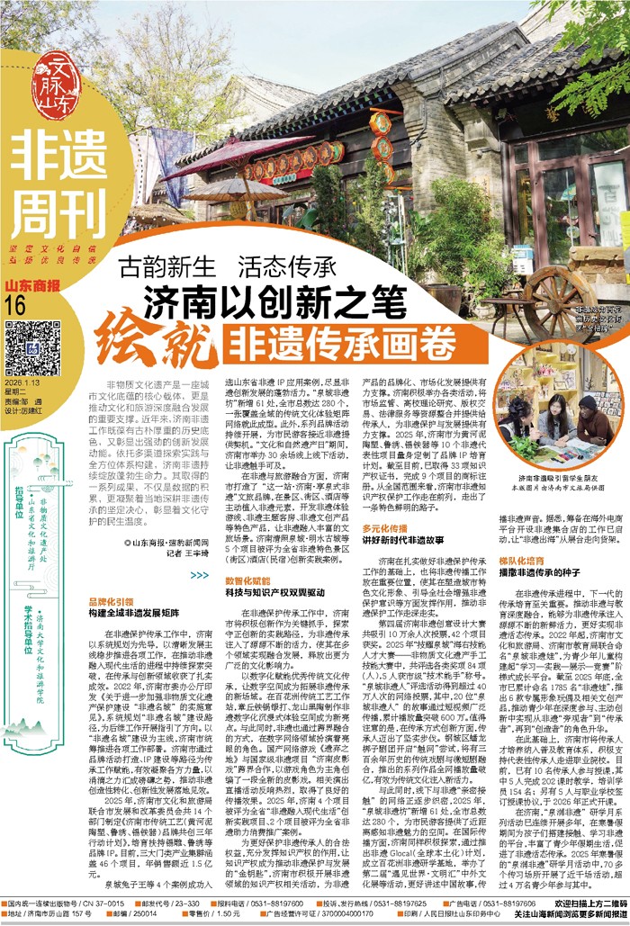 非物质文化遗产是一座城市文化底蕴的核心载体,更是推动文化和旅游深度融合发展的重要支撑。近年来,济南非遗工作既葆有古朴厚重的历史底色,又彰显出强劲的创新发展动能。依托多渠道探索实践与全方位体系构建,济南非遗持续绽放蓬勃生命力。其取得的一系列成果,不仅是数据的积累,更凝聚着当地深耕非遗传承的坚定决心,彰显着文化守护的民生温度。