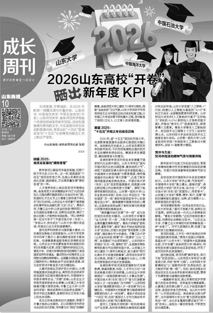 时序更替,华章日新。当2026年的第一缕曙光洒向齐鲁大地,山东大学、中国海洋大学、中国石油大学(华东)、山东师范大学、曲阜师范大学等数十所高校相继发布新年贺词。