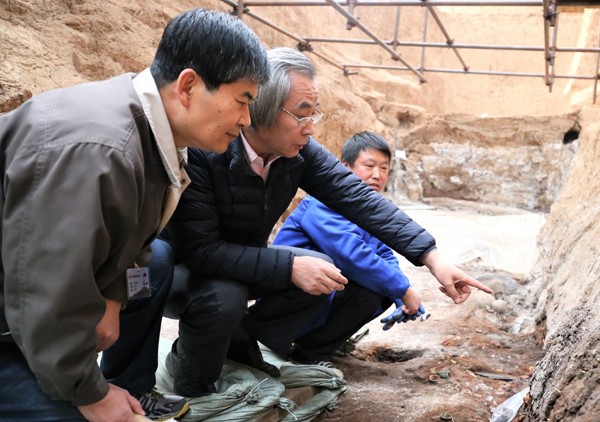 马永嬴在霸陵考古现场调查(左一) (据陕西都市快报)