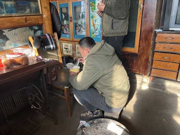 中午拍摄结束后,他回到老屋,和等待多时的粉丝一一合影,然后坐在小马扎上,匆匆吃了碗泡面,在为数不多的休息时间中,躺在土炕上,一遍又一遍看着自己的视频。