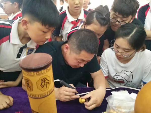 让崔汉斌颇为感动的是,学习、体验葫芦烙画也为孩子们增添了一种表达爱意的方式。“有的孩子相对含蓄,很少对家人热烈地表达情感。有一次,一个孩子准备了一件葫芦烙画作品作为母亲节礼物带回家,在上面写下对妈妈的爱。妈妈收到礼物后,非常感动。打电话给我说,孩子从来没有将‘爱’说出口过,但在葫芦烙画中她看到,也感受到了孩子的爱意。”经过这件事,崔汉斌找到了自己非遗体验课的另一种深刻意义,便是实现对孩子爱的教育。