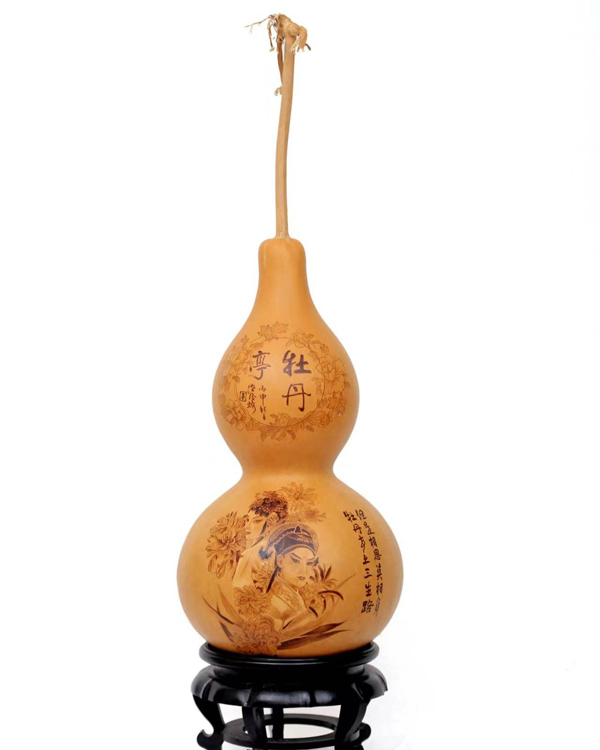 崔汉斌创作的葫芦烙画《牡丹亭》