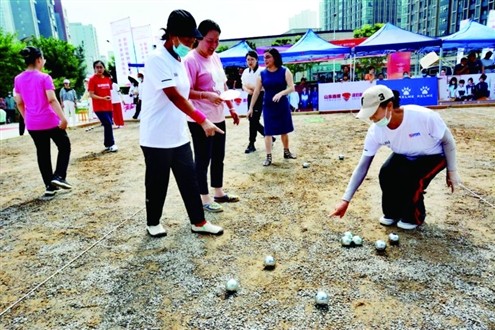 新奇!有趣!时尚休闲的地掷球运动不时吸引行人驻足