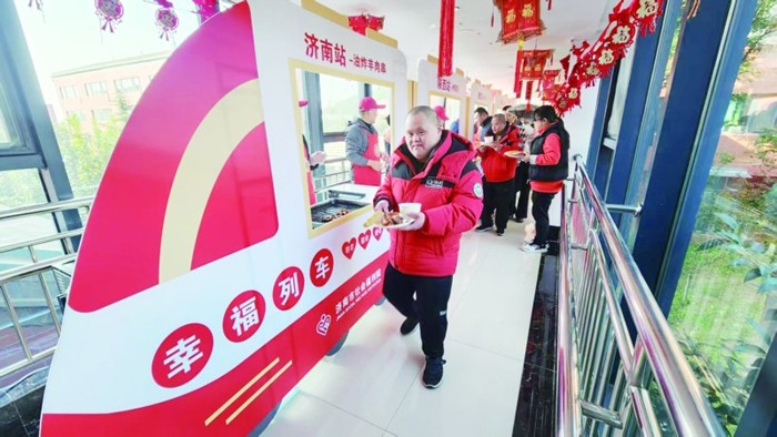 趣味运动会也是活动的一大亮点,投沙包、抱球跑等趣味项目,护理员与老人结对参赛,既锻炼了老人的身体,又增添了生活的乐趣。赛场上,老人们热情高涨,积极参与,为了赢得奖品努力拼搏。此外,中秋夜话、美食列车等活动,也从不同角度丰富了老人的精神文化生活,让他们在福利院度过一个又一个难忘的金秋时光。“我们让院里厨师准备各地特色美食供服务对象品尝,美食摊位以列车停靠站点的形式布置,就是希望让老人不出门遍尝全国美食。”潘燕介绍。