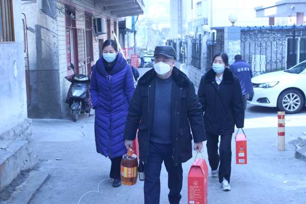 一辆辆满载居民订单的运输车停驻于各个社区前,工作人员将绑着地址和小票的货物一一转交给身着防护服的社区人员,再由“大白”们分类整理后,或是放置于货架,或是装入标注着楼号的小推车中,为居民们及时送去物资。